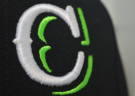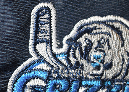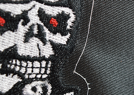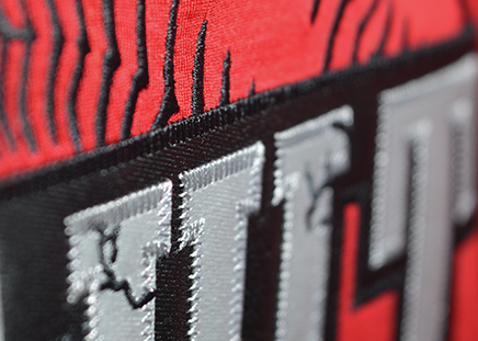 Used to enhance large fill stitch areas by using material instead of stitching the entire area. Often used on athletic uniforms such as baseball jerseys. The materials are sewn down with either a satin, steil, or zig-zag stitch. This can save on stitching costs but also provides a great look.